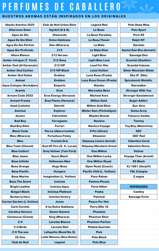 NUESTRAS FRAGANCIAS SE ENCUENTRAN INSPIRADAS EN LAS ORIGINALES...